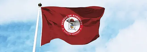 De los Cuerpos de Bomberos será un pabellón de fondo rojo, en el centro contendrá el Escudo Oficial de la Institución. En su parte superior constará el nombre del lugar a que pertenece, y en la inferior el Lema “Abnegación y Disciplina”.